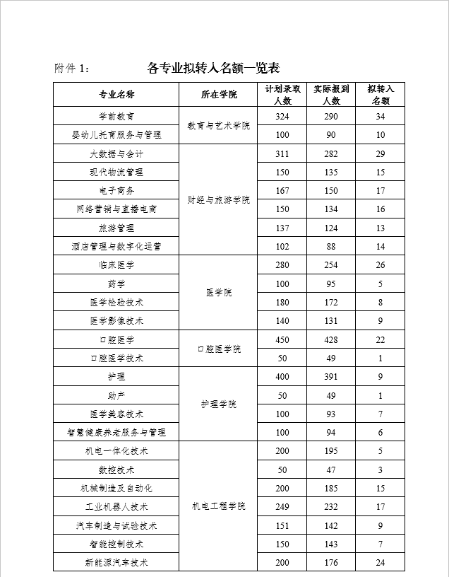 关于公布各专业拟转入名额的通知 2026年01月06日 17:34 编辑:代灯华 作者: 浏览:次 各教学院部: 根据《湖北职业技术学院2025级学生转专业工作方案》要求,现对各专业拟转入名额进行公布。 教务处 2026年1月6日
