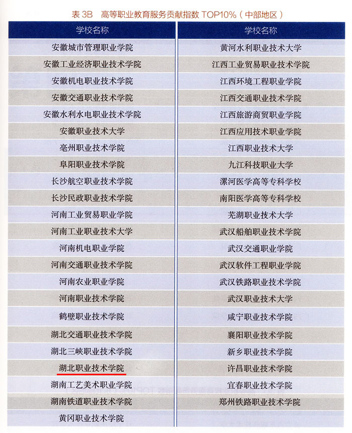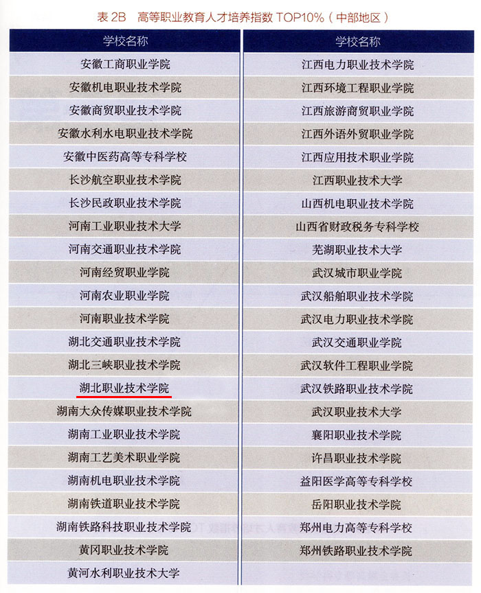 (本网讯 代灯华)近日,《中国职业教育质量报告(2024 年度)》正式发布,湖北职业技术学院凭借全链条人才培养的卓越成效,首次入选 2024 年度高等职业教育人才培养指数中部地区 TOP10%,服务贡献指数则连续三年稳居中部地区 TOP10%。两项权威榜单双双上榜,是学校办学实力、育人质量与社会影响力的有力印证,充分彰显学校在中部地区职业教育高质量发展中的标杆地位。
