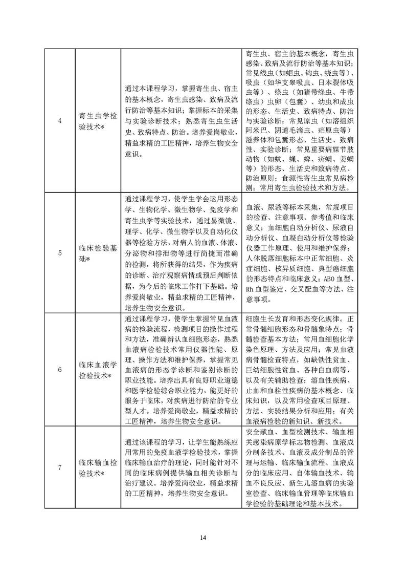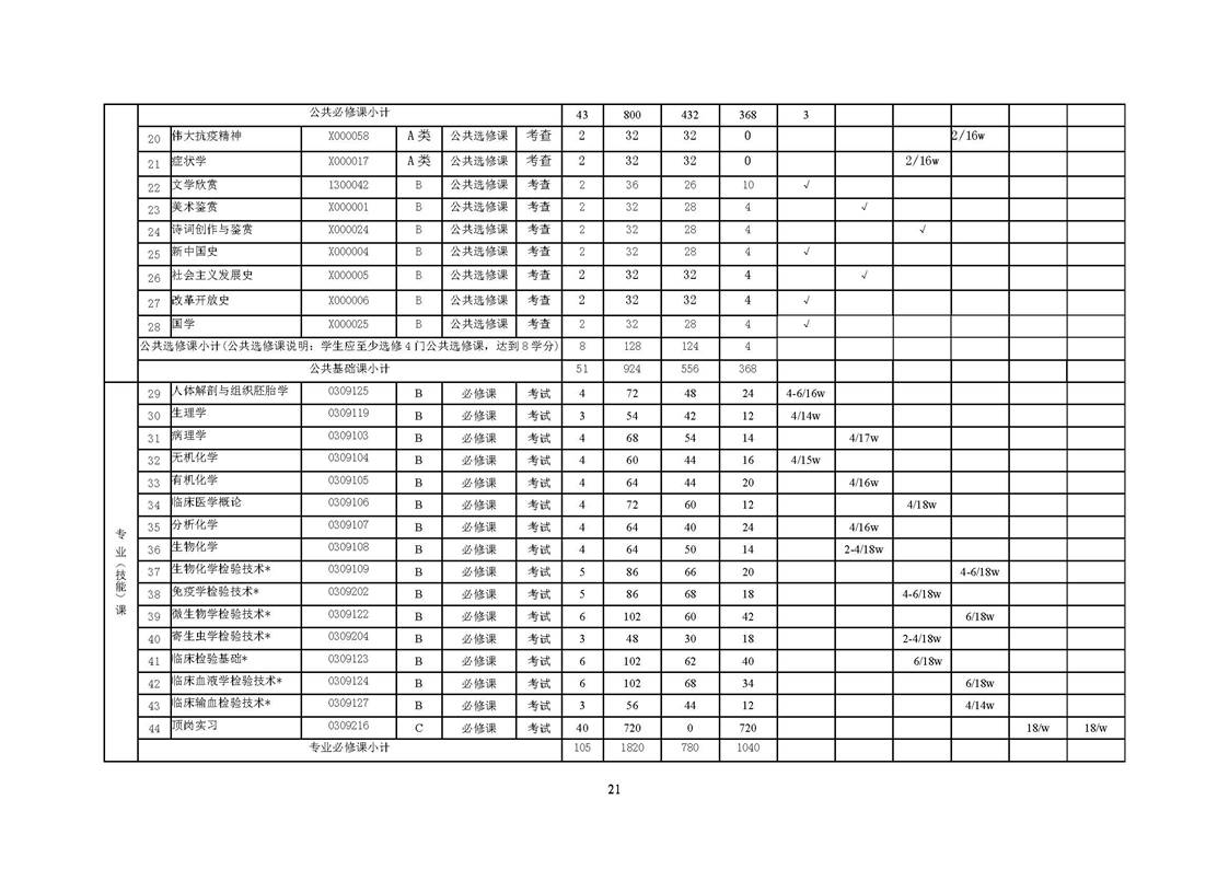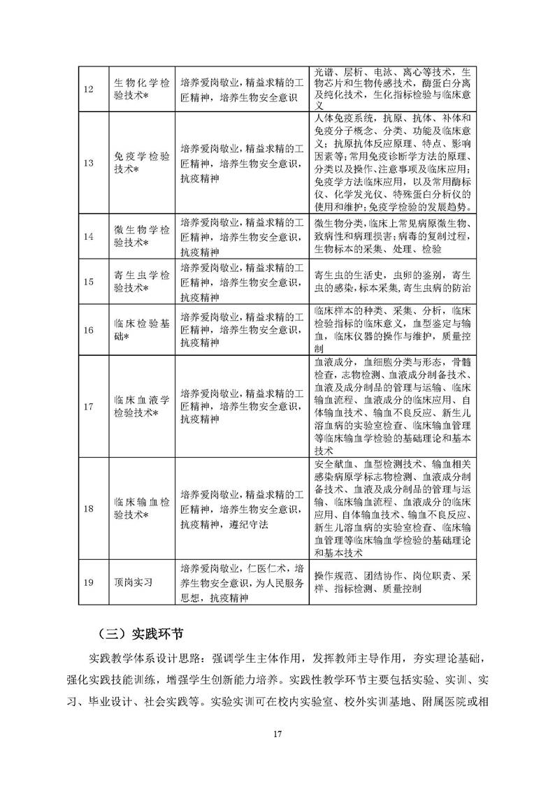 0309 医学检验技术专业 2021版人才培养方案