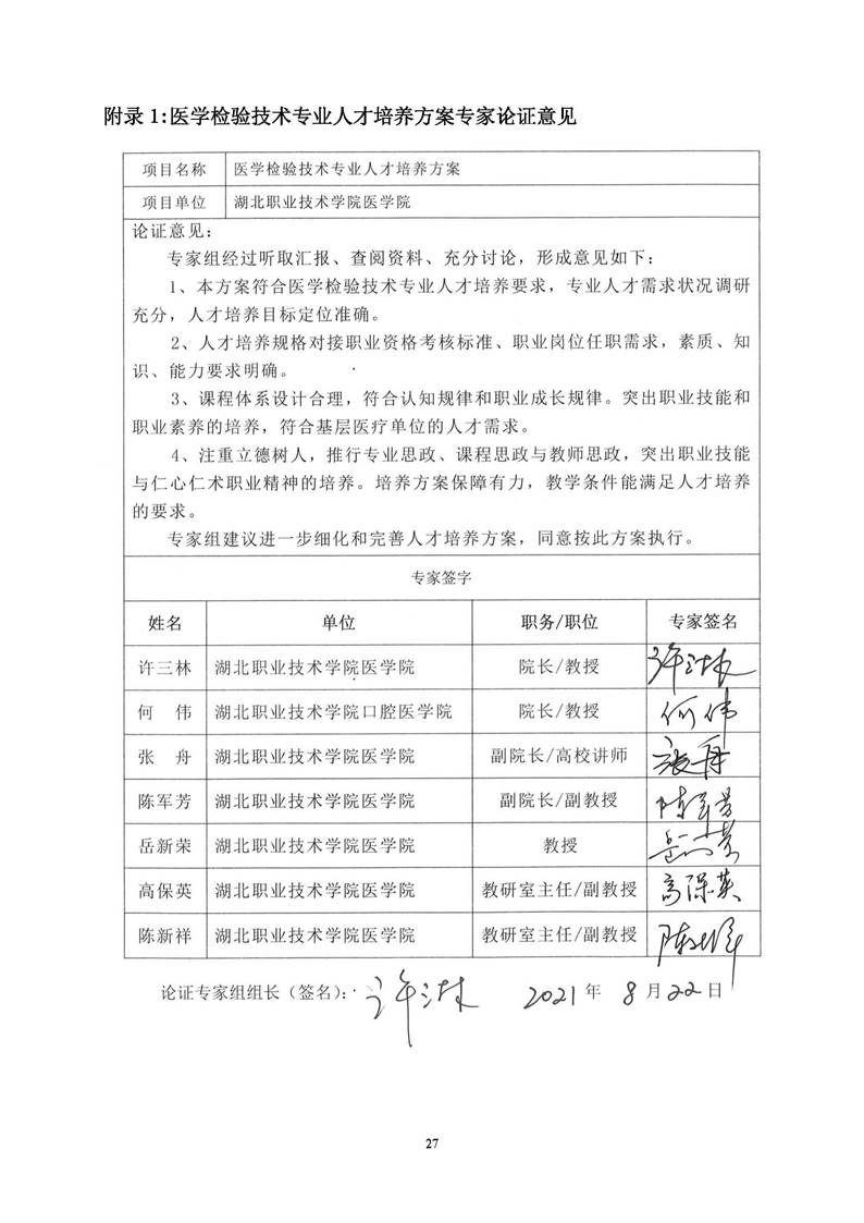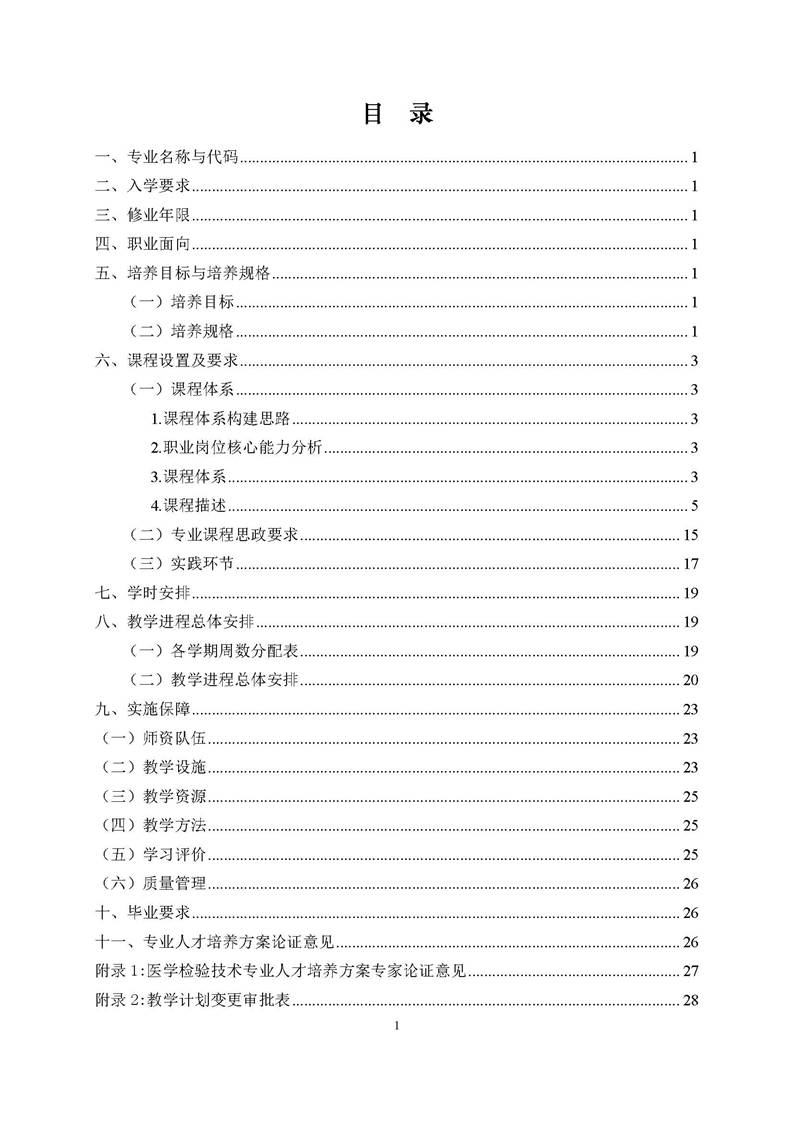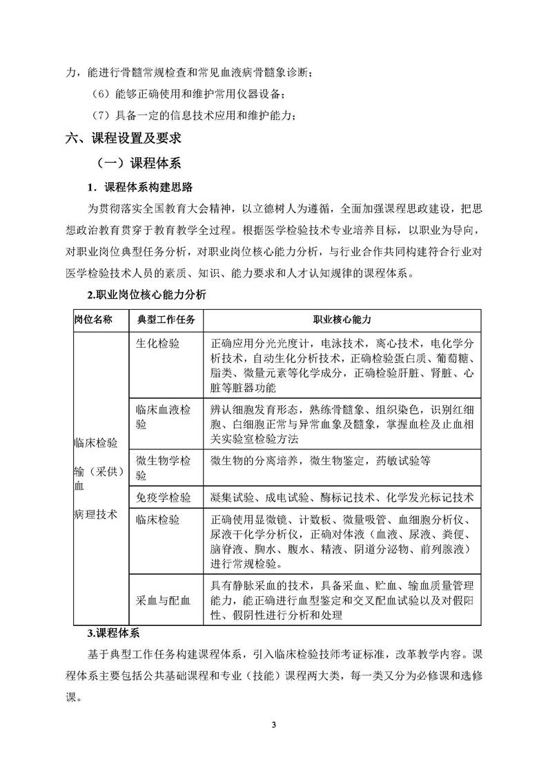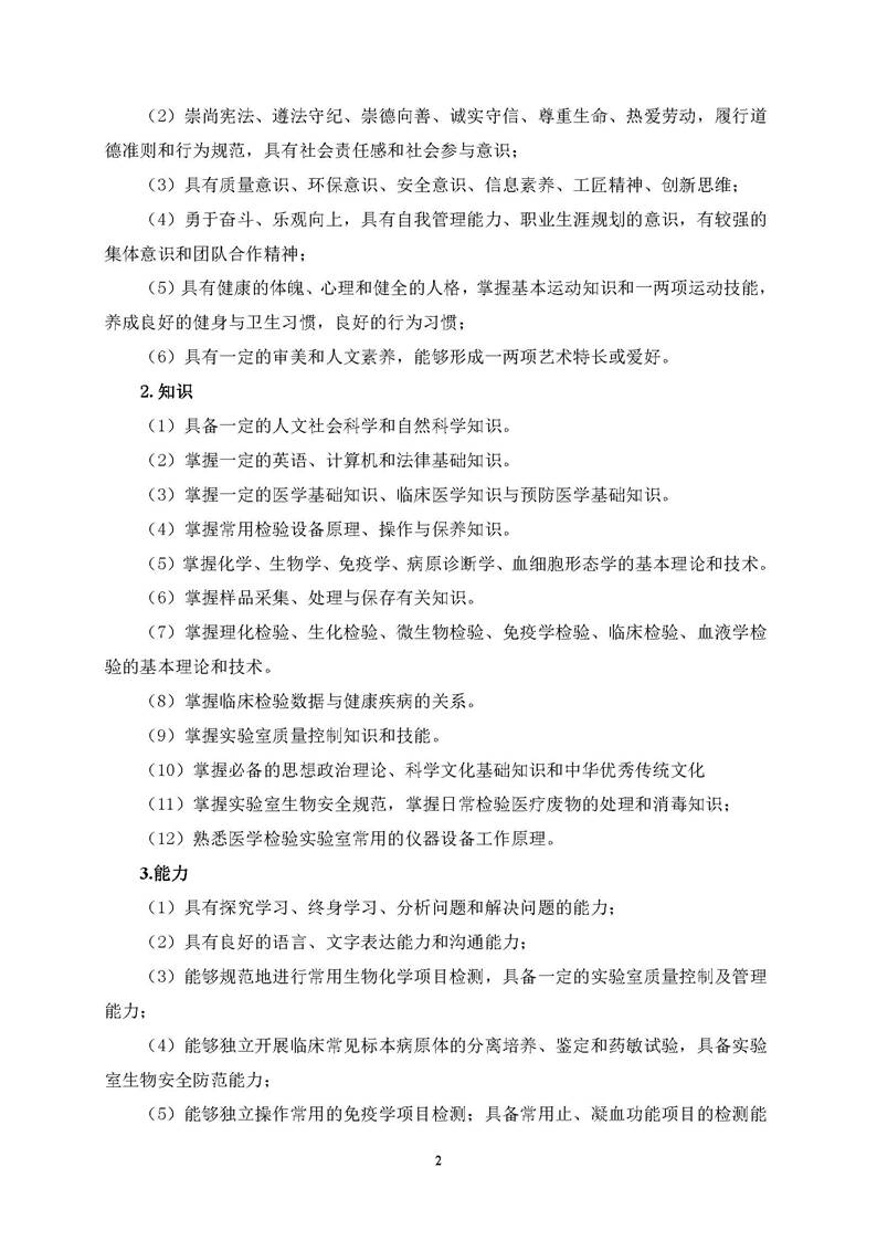 0309 医学检验技术专业 2021版人才培养方案